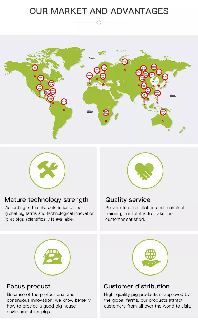 Deba Brothers® चीनमा नि:शुल्क पहुँच स्टलहरूको व्यावसायिक निर्माता हो। हाम्रा नि:शुल्क पहुँच स्टलहरूले प्रयोगकर्ता-मैत्री डिजाइन, सबै स्केलहरूको सुँगुर फार्महरूमा व्यापक रूपमा लागू हुने, र प्रीमियम सामग्री र राम्रो कारीगरीको साथ असाधारण स्थायित्व प्रदान गर्दछ। विश्वव्यापी पशुपालन किसानहरू द्वारा राम्रोसँग प्राप्त गरिएको, यो उत्पादन यसको स्थिर प्रदर्शन र उच्च लागत-प्रभावकारिताको लागि पूर्ण रूपमा प्रमाणित गरिएको छ।